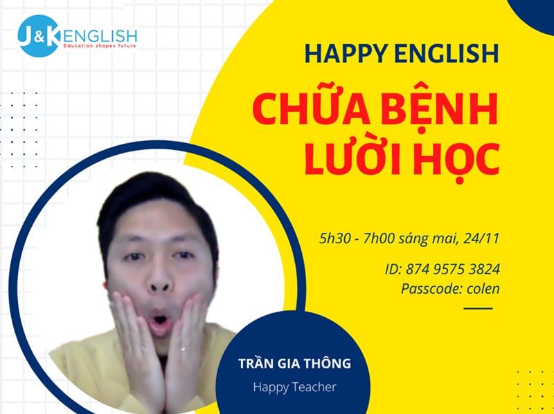 Nếu bạn muốn “Vượt lười”, xây dựng thói quen tích cực và nâng cao tiếng Anh của mình, mời bạn tìm hiểu về Happy English – Dự án tiếng Anh cộng đồng miễn phí tại Happy Class TẠI ĐÂY.
